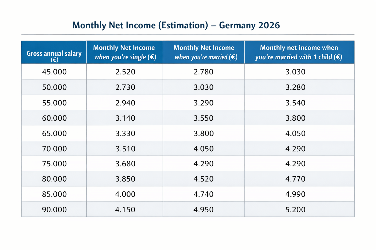 Remember that “net” is showing what you end up having in your bank account to spend as you like. So, unless you have any expensive hobbies, being single with a net income of 2.500 EUR really is a decent salary to start with in Germany (see cost of living below). In fact, with a net income of 3.700 EUR per month (75k gross per year) you already belong to the top 10% of German wage earners, simply because the middle class is still rather large.